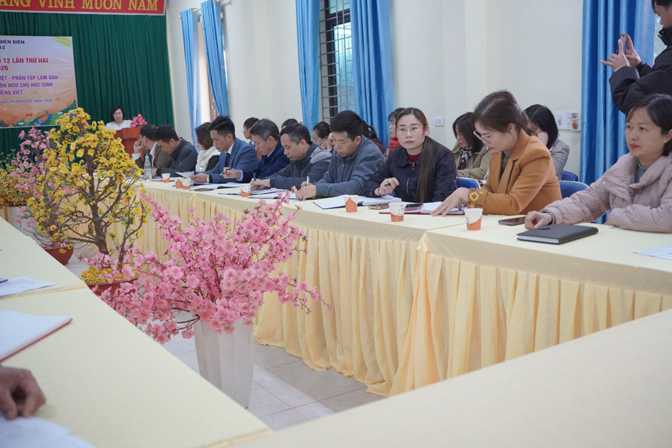 Phát biểu khai mạc buổi sinh hoạt, đại diện Cụm chuyên môn số 12 đã nhấn mạnh mục đích của đợt sinh hoạt lần này là bồi dưỡng, nâng cao năng lực chuyên môn cho cán bộ quản lý và giáo viên, đặc biệt trong việc tổ chức dạy học môn Tiếng Việt – Phần Tập làm văn lớp 5 theo hướng phát triển năng lực ngôn ngữ cho học sinh.